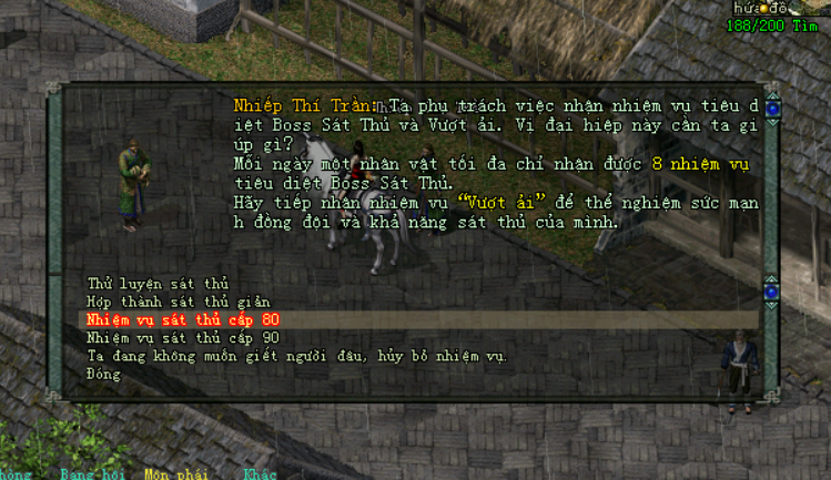 Sau khi nhận nhiệm vụ, người chơi đến vị trí xuất hiện boss, giết boss để hòan thành nhiệm vụ.